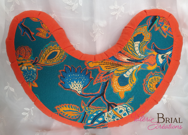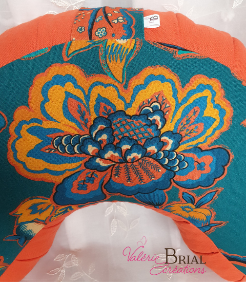 Le coussin de méditation demi-lune Valérie BRIAL créations, garni de balle d’épeautre biologique, permet une assise stable et ferme.